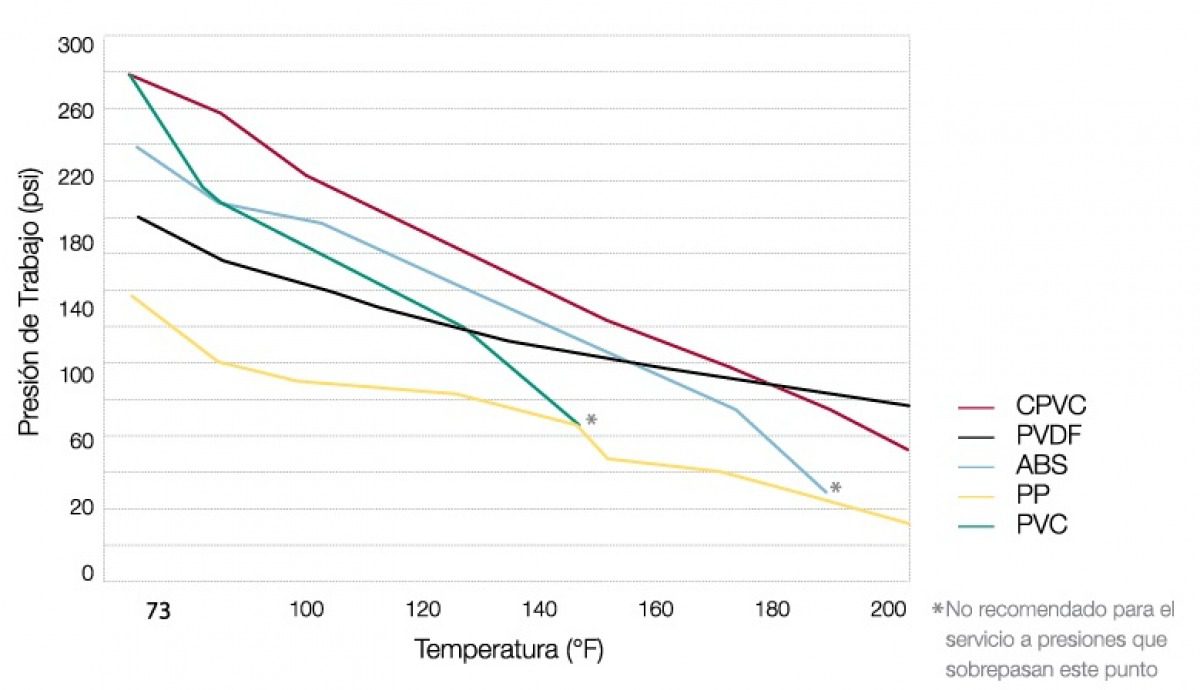 En aplicaciones con requisitos de presión elevada, puede ser necesario buscar materiales de tubería que excedan los requisitos de clasificación de materiales ASTM F441 para capacidades de presión más alta.