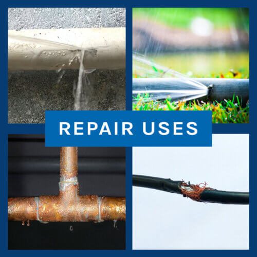 Envoltura de silicona autofusionable repara rápidamente fugas o desgarros en tuberÃas, mangueras, conductos y cables eléctricos.