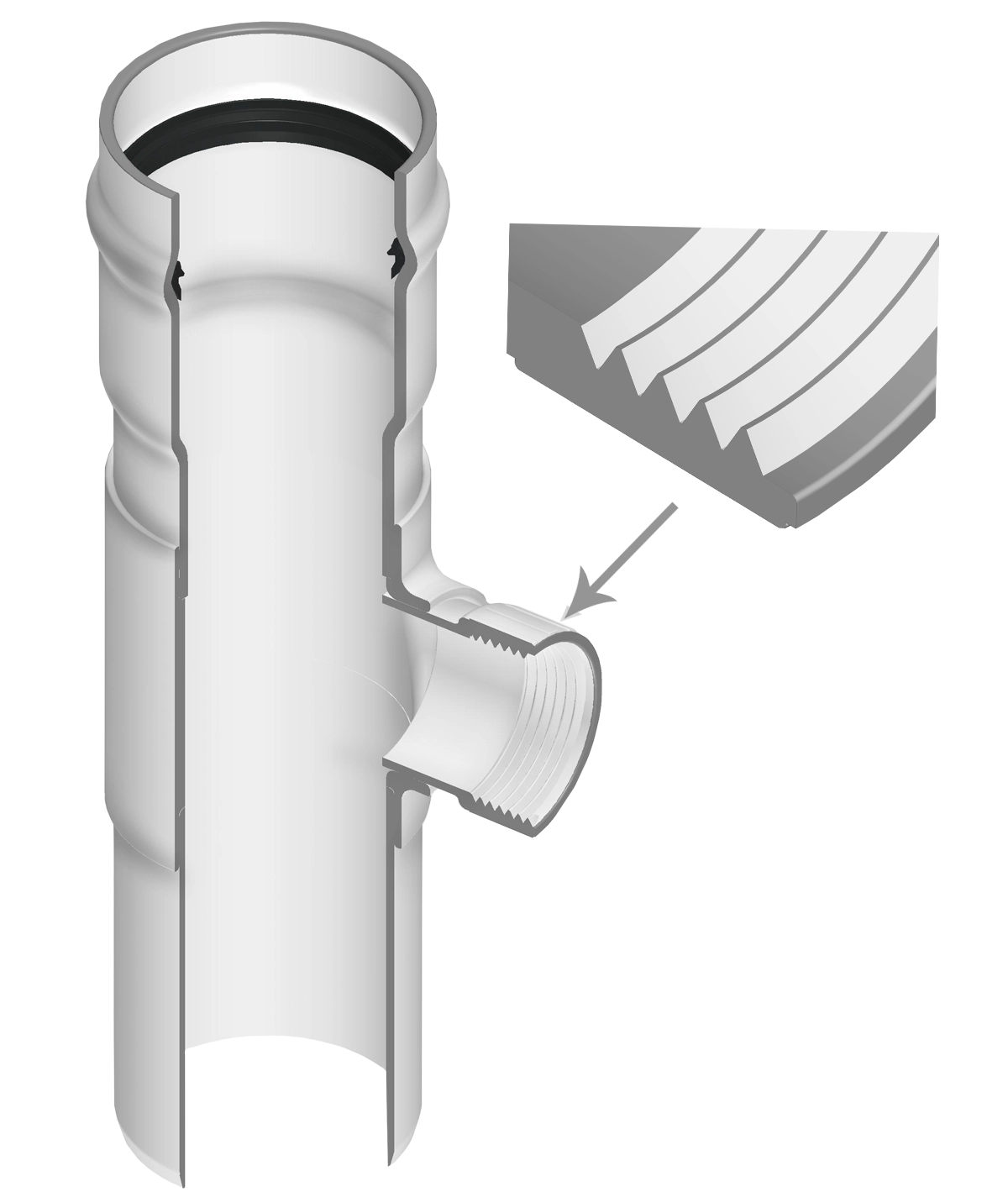 PVC Class 125 IPS Fabricated Reinforced Tee (Gasket x Spigot x Fipt)